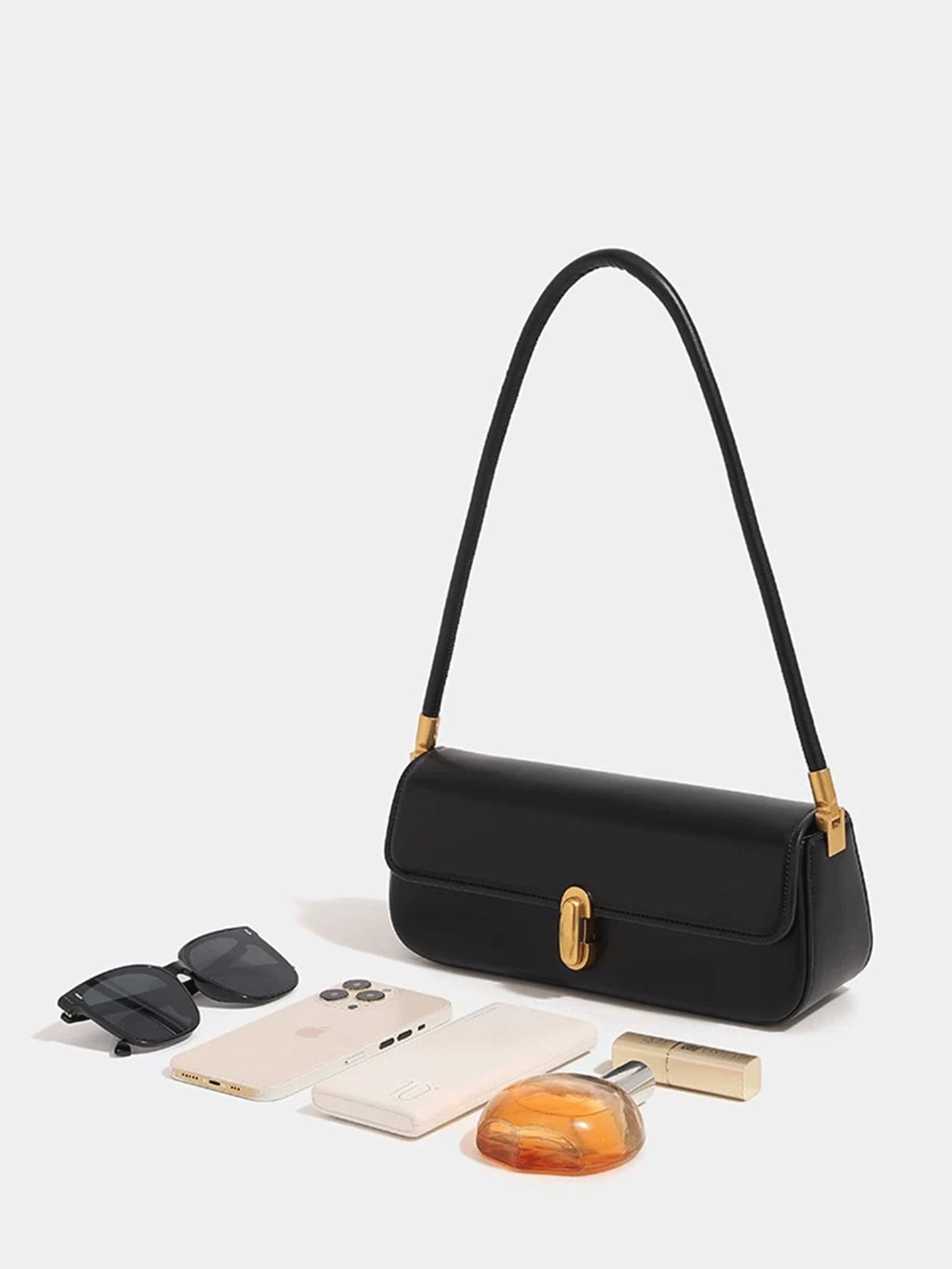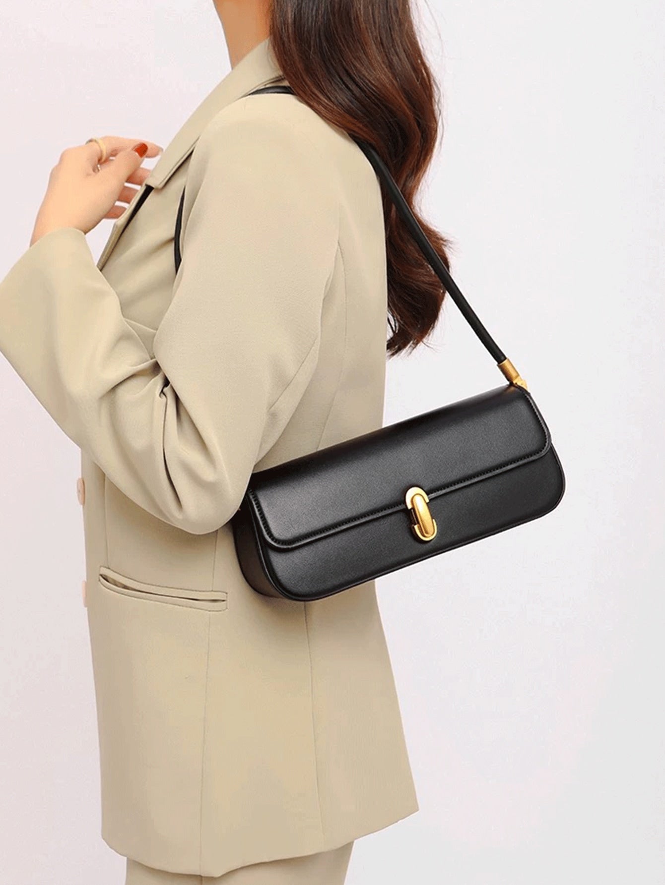 • Fashion Classic Joker Solid Color Pu Waterproof Fabric, Flip Design Shoulder Bag, Elegant Handbag, Retro Business Commuter Bag, Underarm Baguette Bag, Ladies Purse, Suitable For Gifts, Shopping, Commuting To Work.