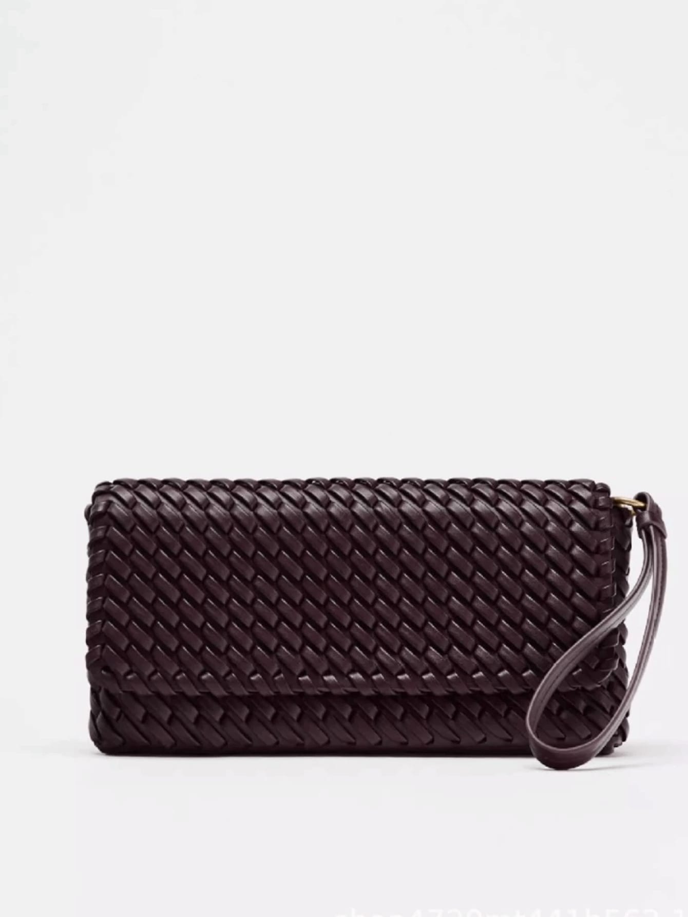 • New Fashion Classic All-Match Wine Red Woven Women's Bag, Simple Women's Handbag, High-End Woven Bag, Flip-Opening Design Messenger Bag, Travel Essential For Vacation, Suitable For Shopping, Commuting To Work, And Parties