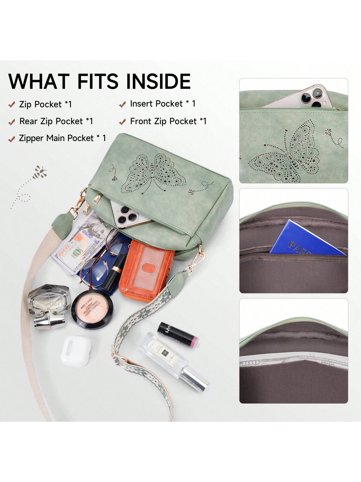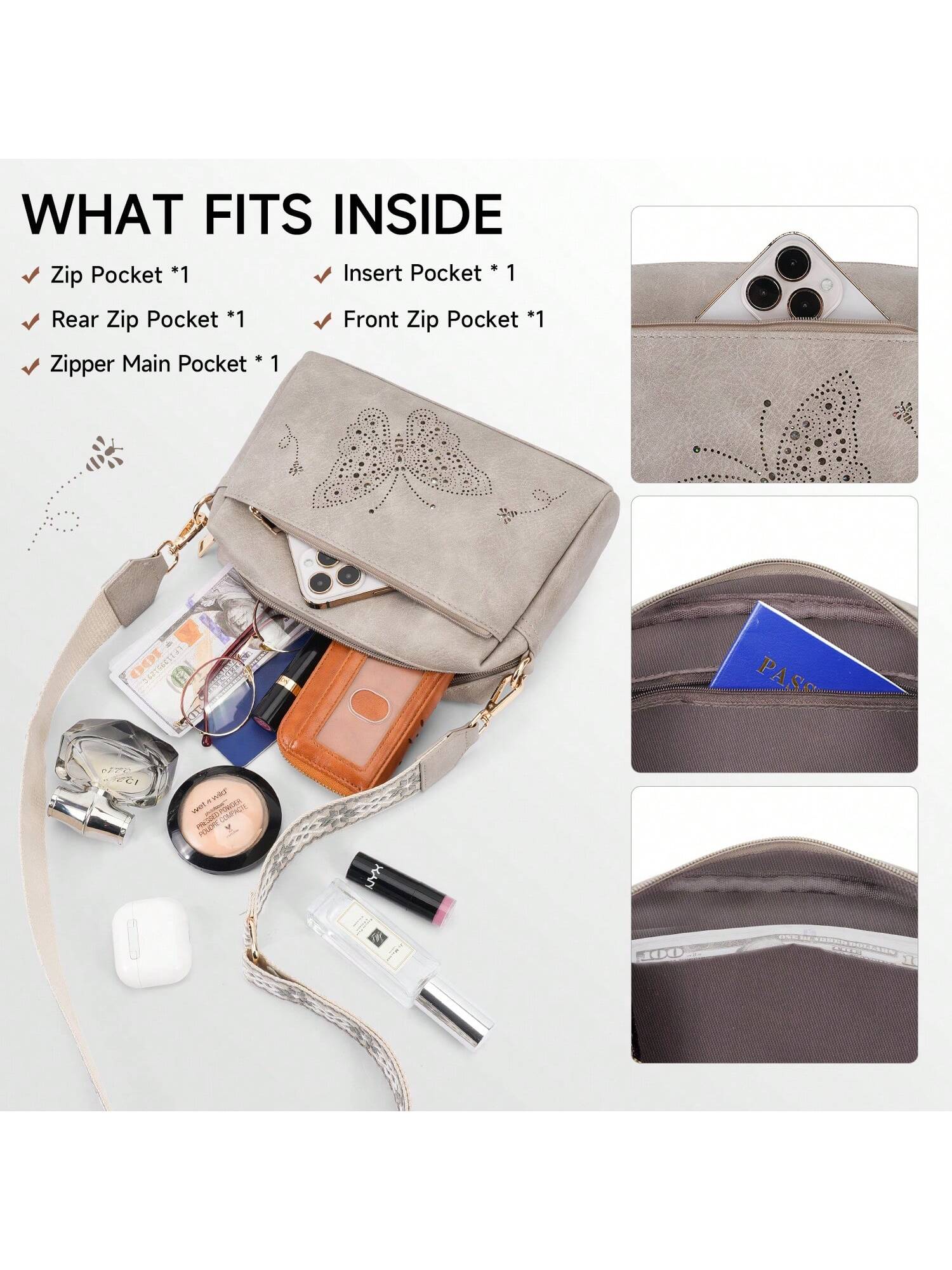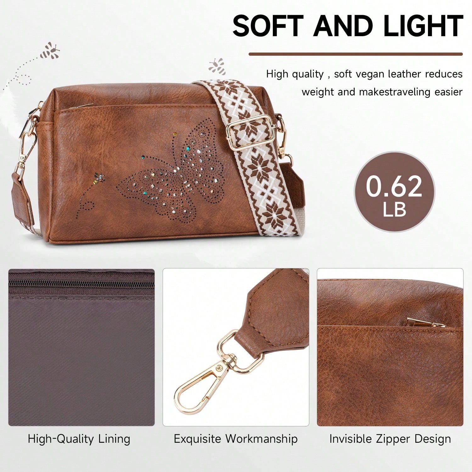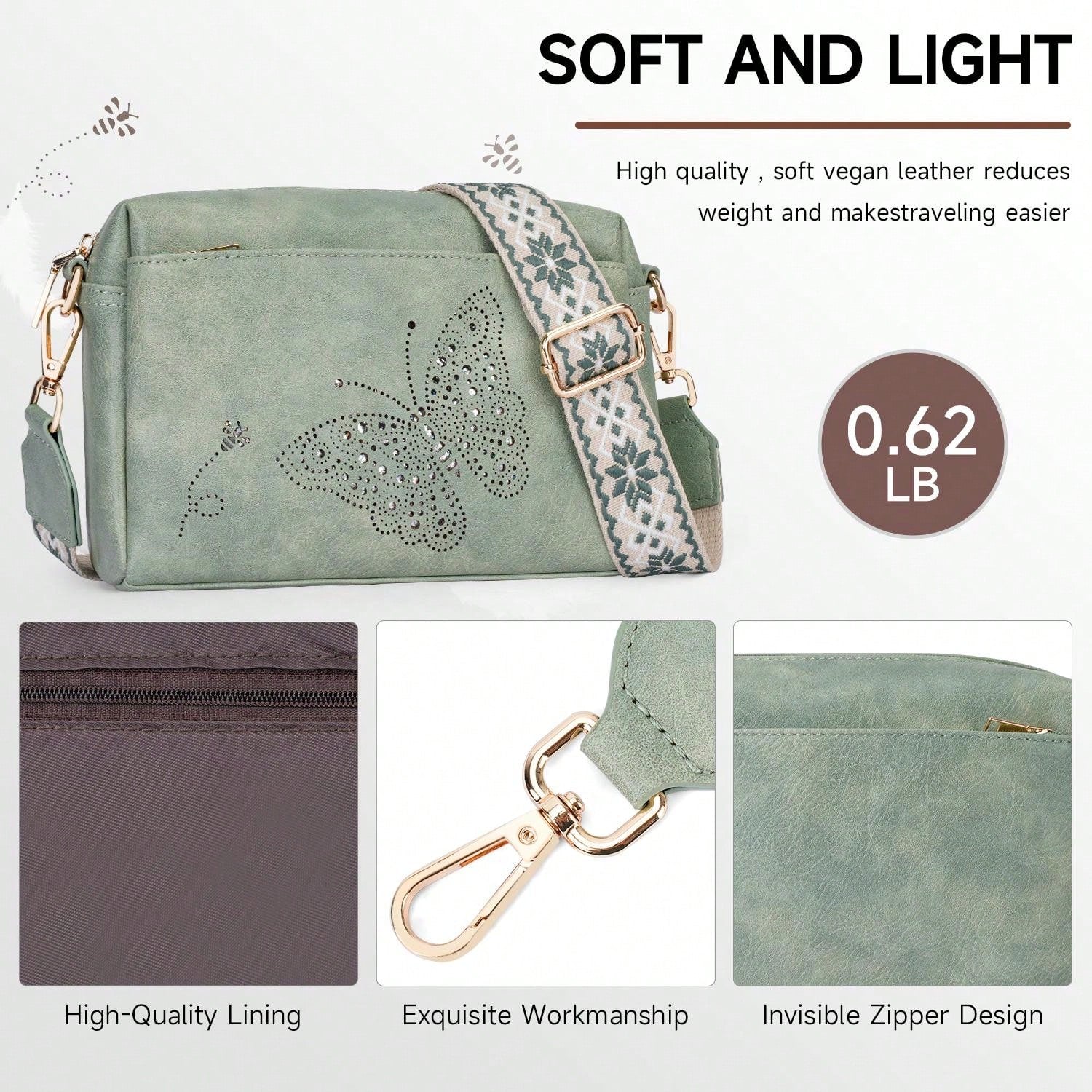 Crafted from durable vegan leather, this lightweight, water-resistant crossbody bag combines style and functionality. It features three zippered pockets for easy organization of essentials like your wallet, phone, and cosmetics. With a sleek, reinforced design, it's perfect for daily use or gifting on any special occasion.