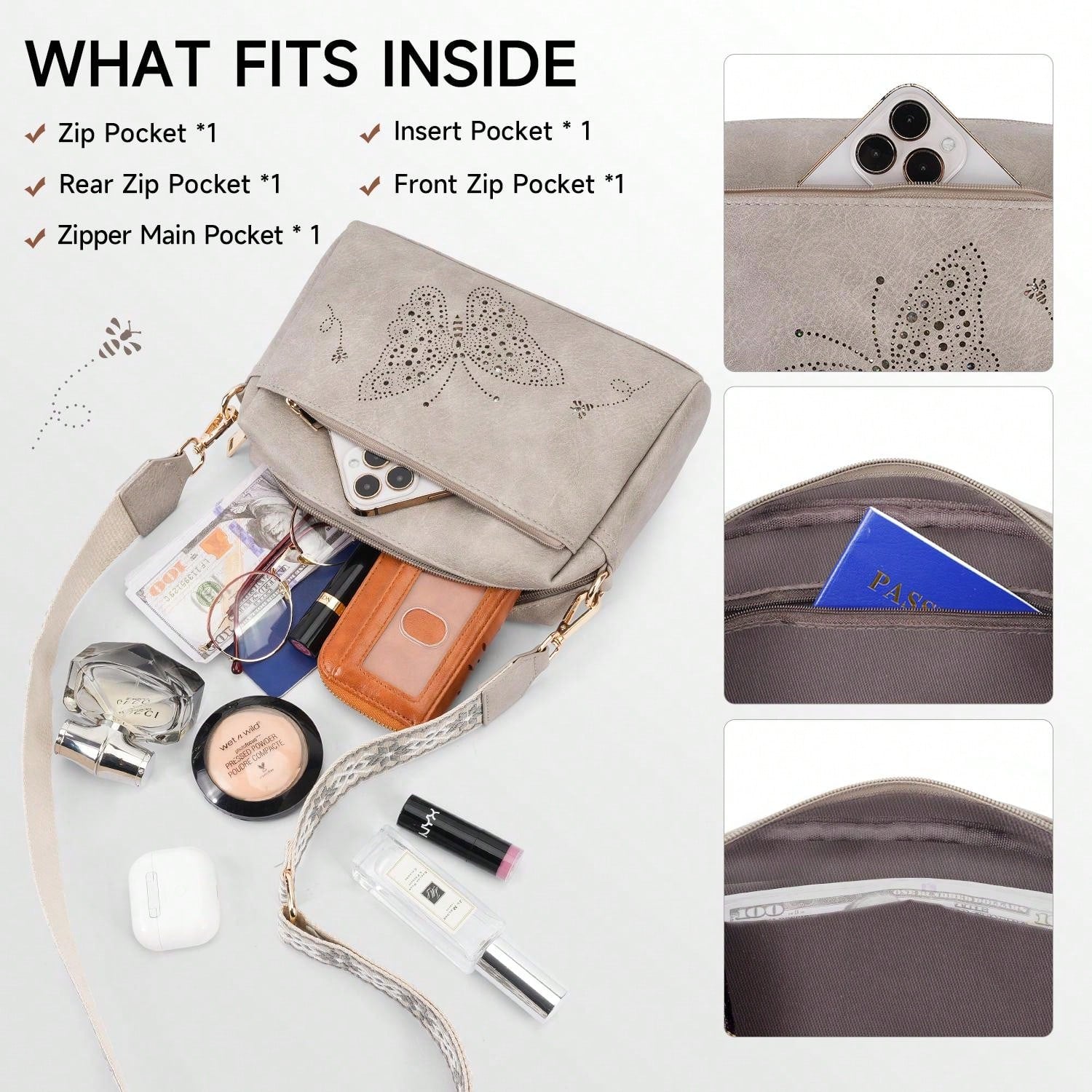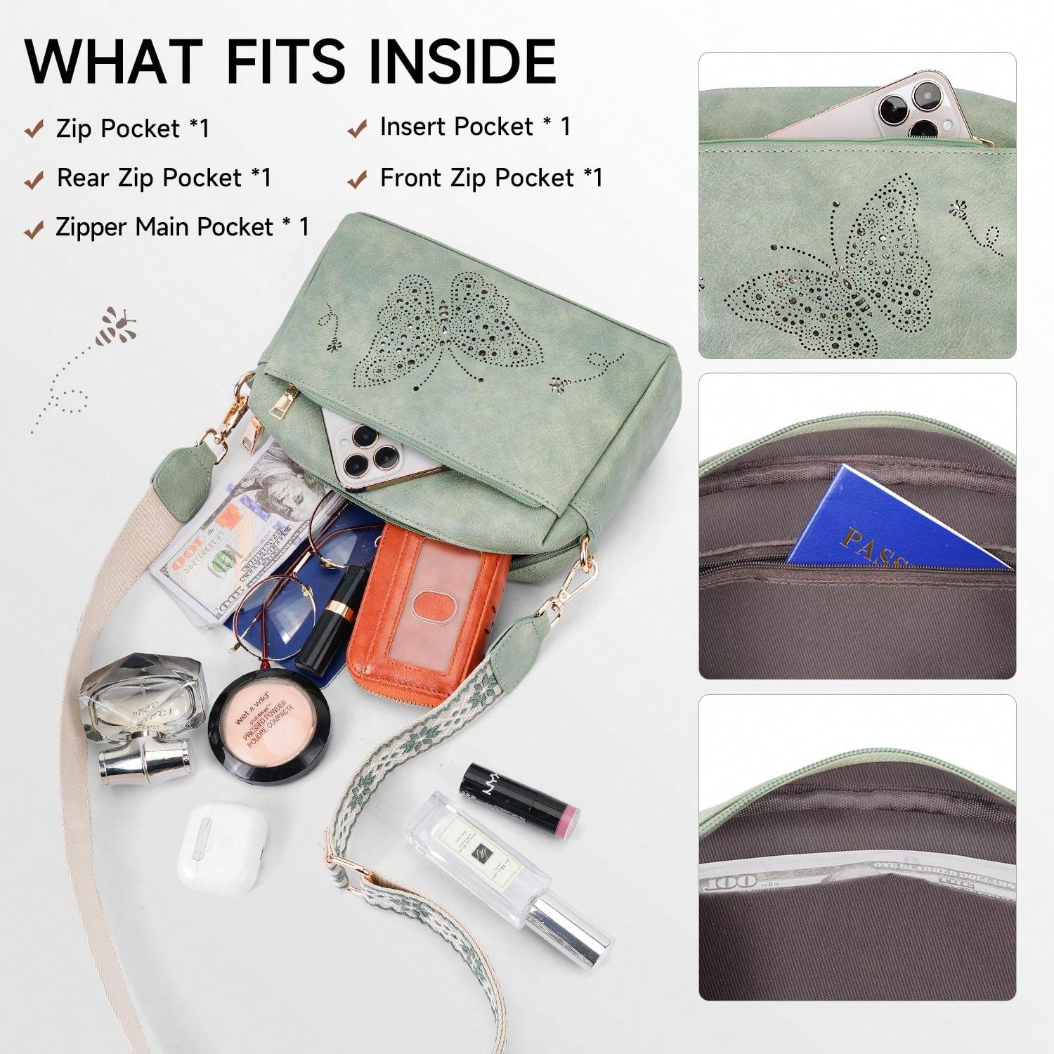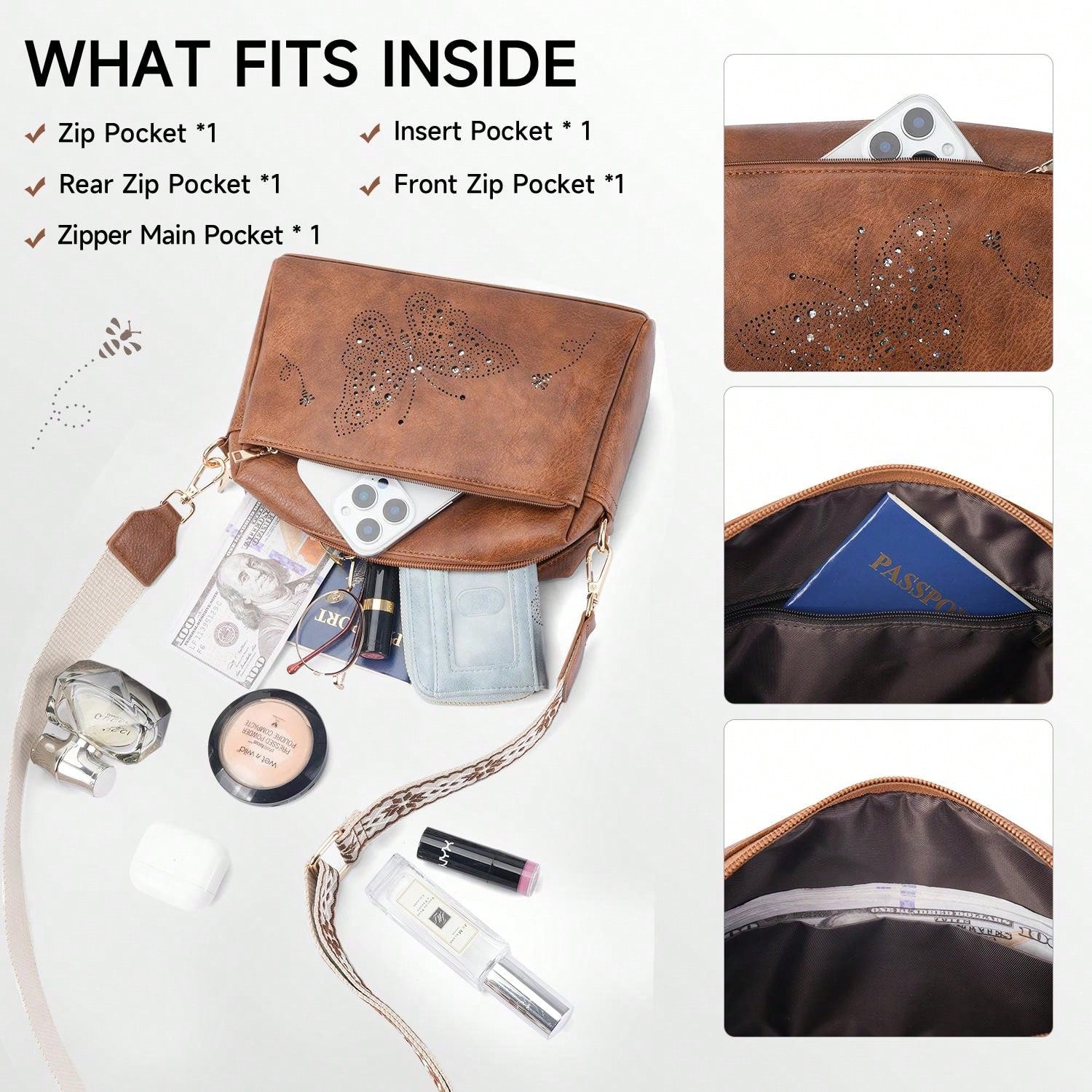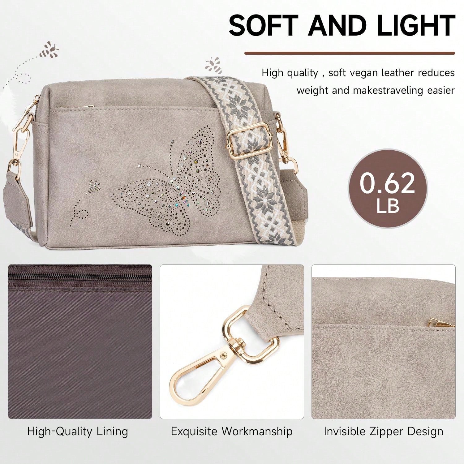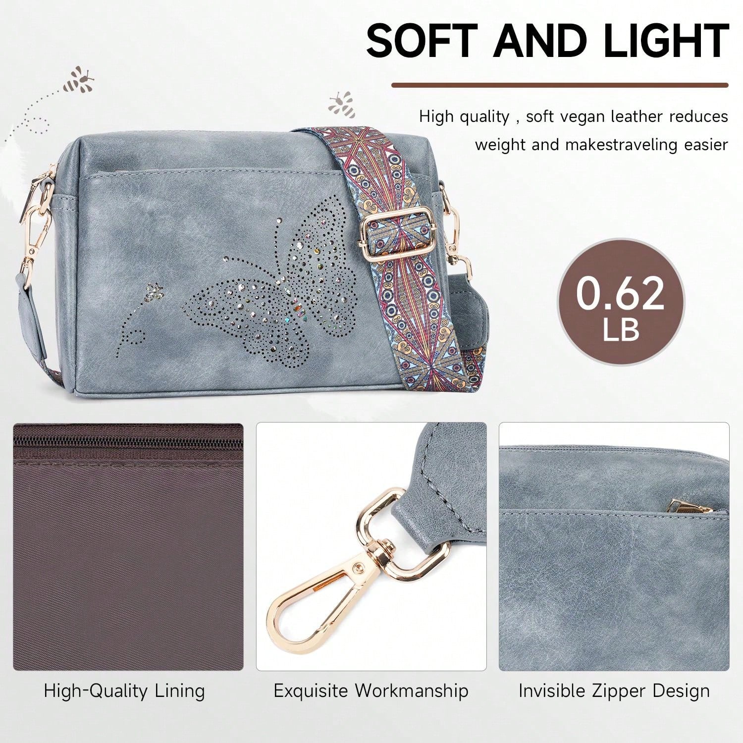 Crafted from durable vegan leather, this lightweight, water-resistant crossbody bag combines style and functionality. It features three zippered pockets for easy organization of essentials like your wallet, phone, and cosmetics. With a sleek, reinforced design, it's perfect for daily use or gifting on any special occasion.