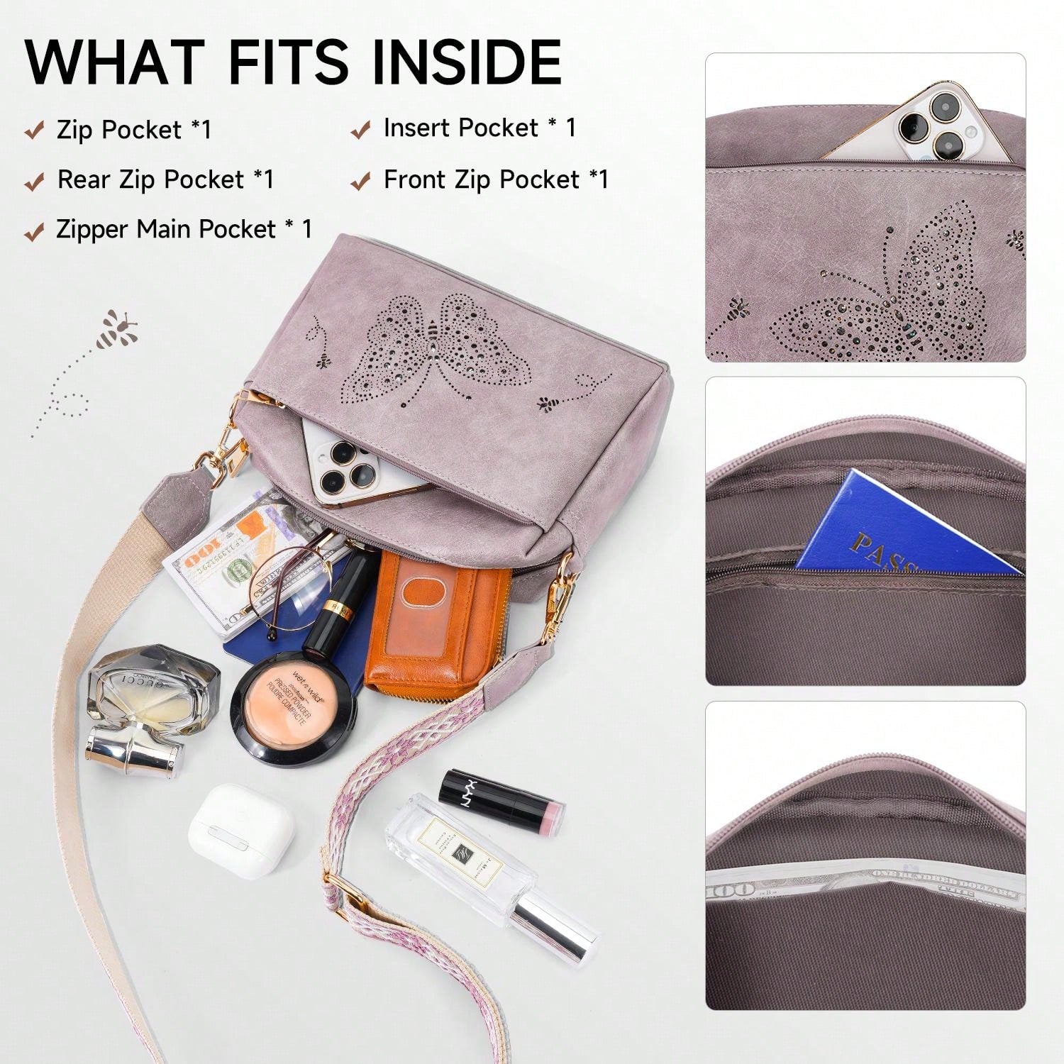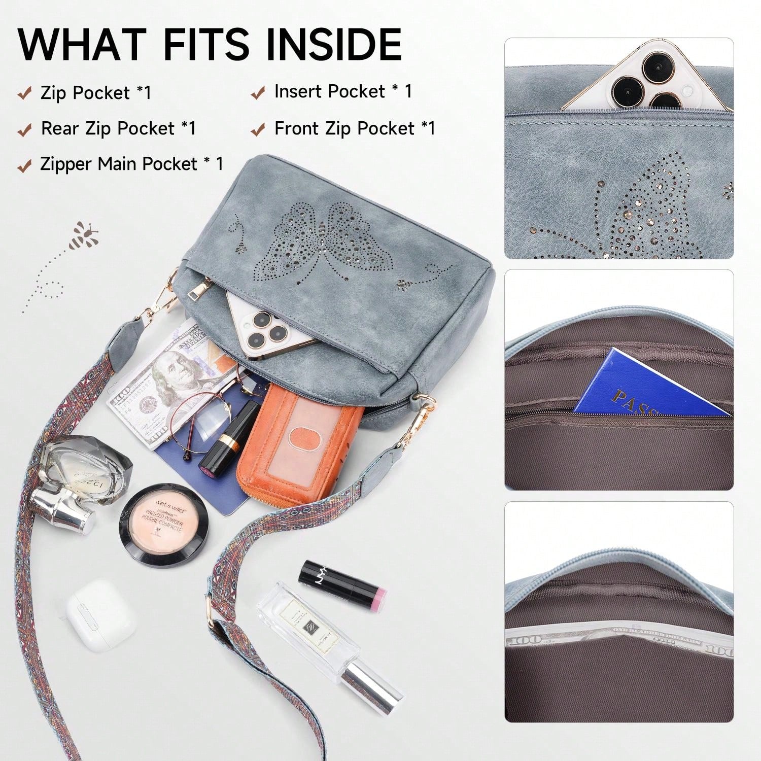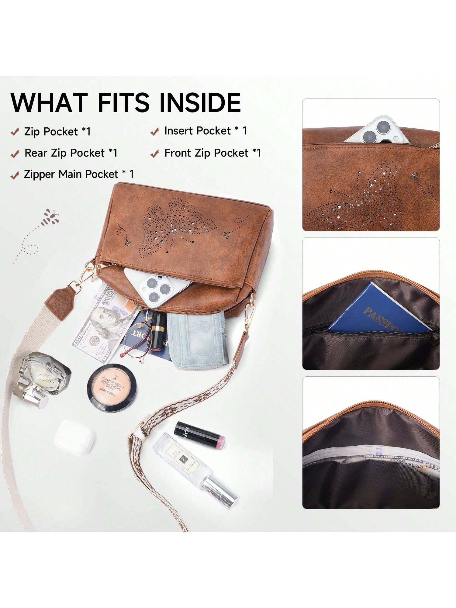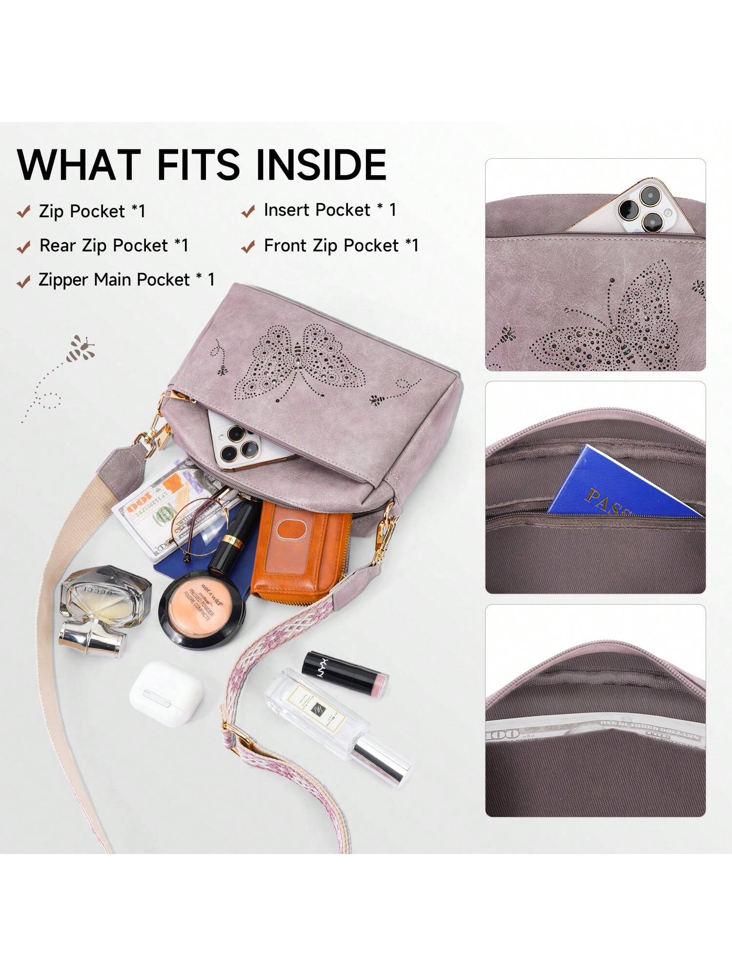 Crafted from durable vegan leather, this lightweight, water-resistant crossbody bag combines style and functionality. It features three zippered pockets for easy organization of essentials like your wallet, phone, and cosmetics. With a sleek, reinforced design, it's perfect for daily use or gifting on any special occasion.