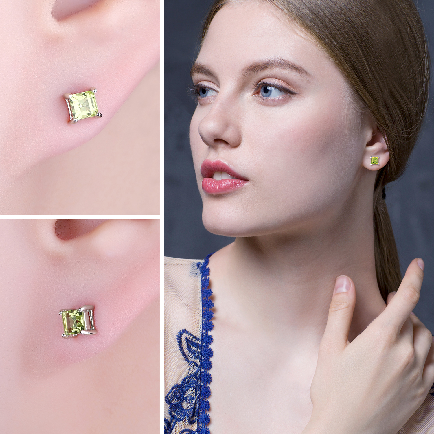 with 4mm princess-cut, peridot. The gleaming gemstones are cradled in four-prong post