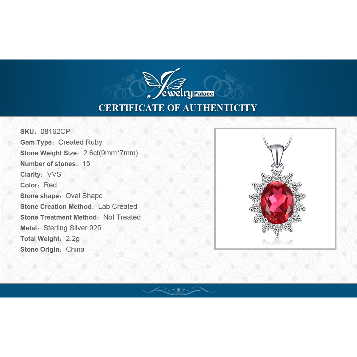 Inspired by the iconic sapphire engagement ring given to Lady Diana in 1981, this classic necklace features a lab-created ruby framed with cubic zirconia.
