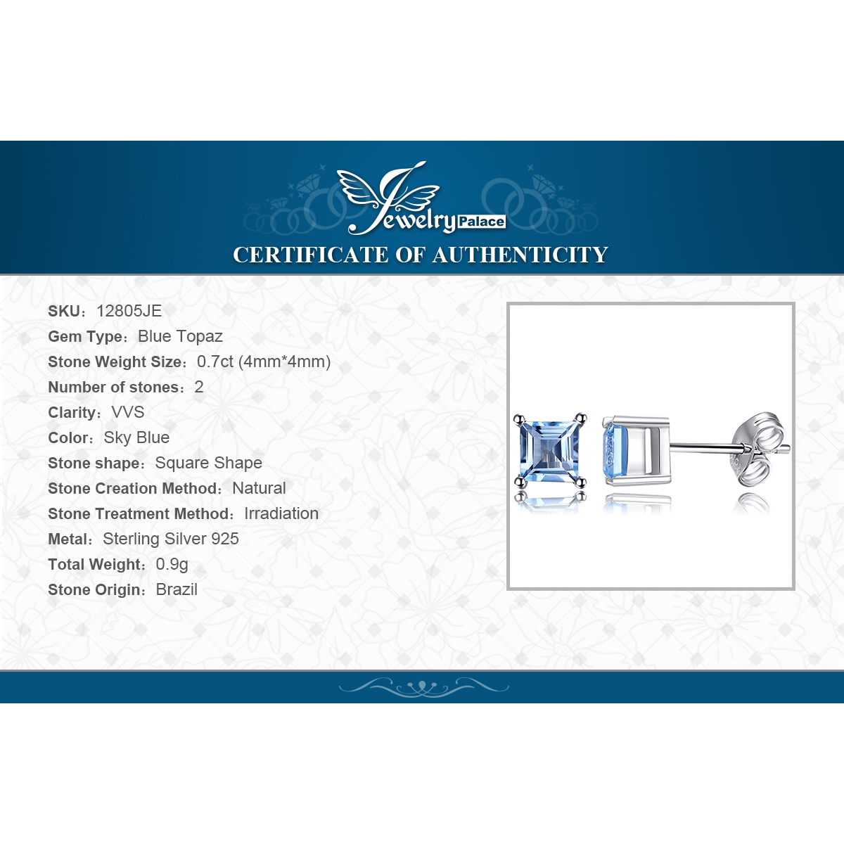 with 4mm princess-cut, sky blue topaz. The gleaming gemstones are cradled in four-prong