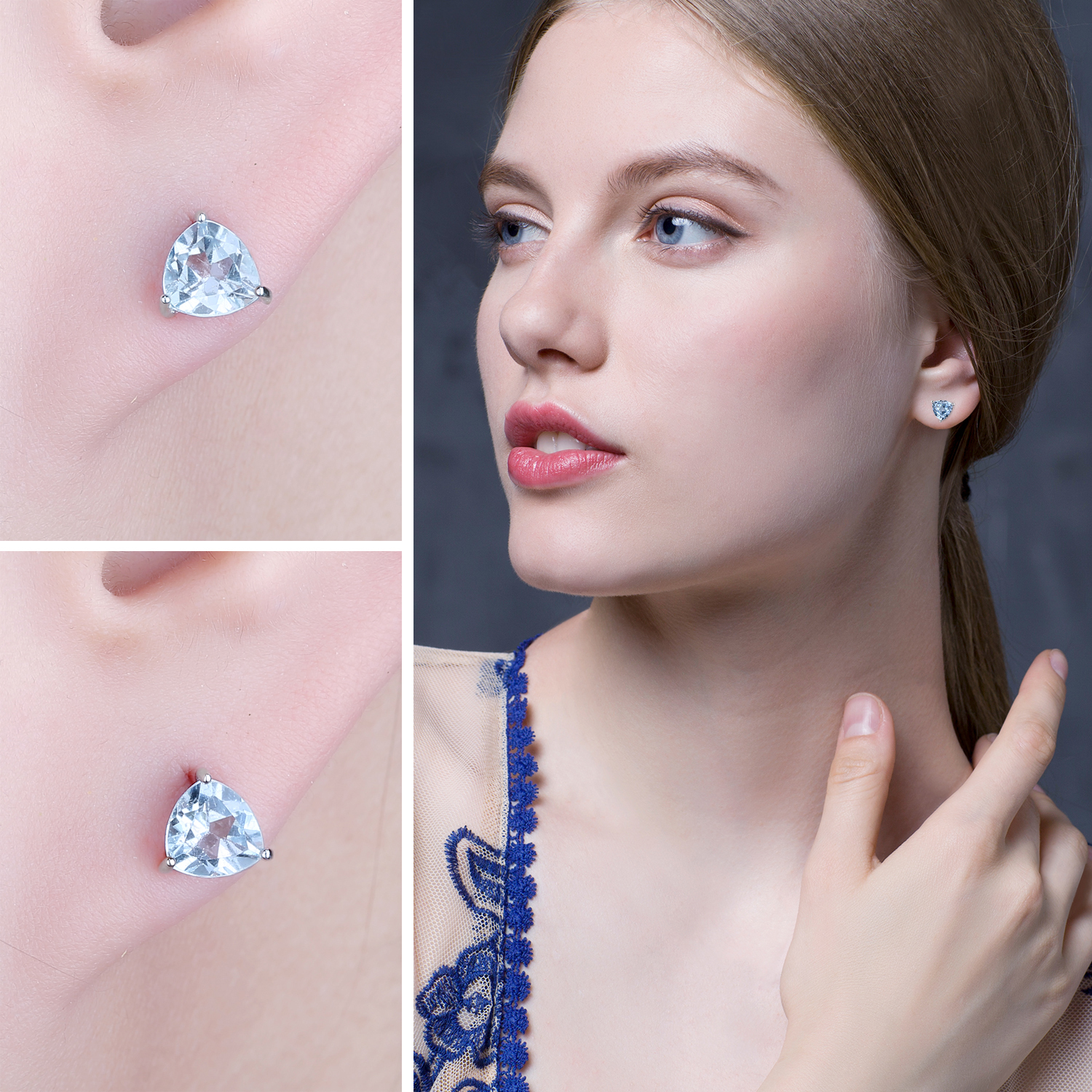 Light sky blue topaz gemstones, set in polished four-prong sterling silver stud earrings,